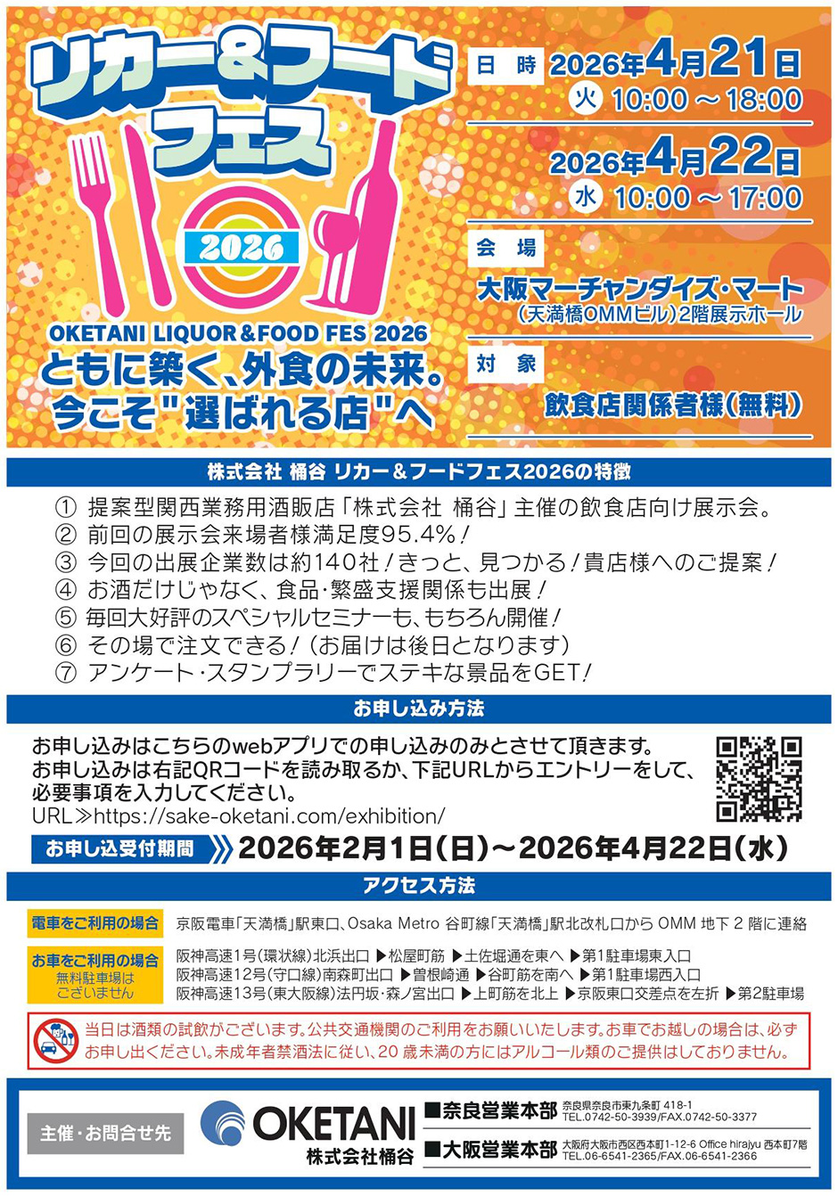 2026年4月21日(火),22日(水) 桶谷 リカー&フードフェス 2026に出展いたします。